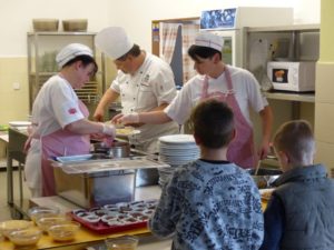 Během tohoto týdne jsme měli možnost ochutnat ve školní jídelně nové pokrmy. Naše pozvání do školní jídelny přijal šéfkuchař Vladimír Šťastný, který se specializuje na pokrmy zdravé výživy, zejména z těstovin, rýže a luštěnin. Ve spolupráci s týmem paní kuchařek připravil z certifikovaných surovin pro strávníky takové speciality jako krůtí plátek s cibulovou šťávou zjemněnou smetanou, pilaf a zelný salát s červenou řepou či gratinované bramborové špecle s listovým špenátem. Spokojené výrazy dětí i dospělých hovořily za vše a pana kuchaře u nás opět rádi přivítáme.