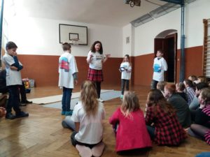 V první vyučovací hodině si žáci rozdělili role, rozdali rekvizity a naučili se krátké texty ke