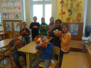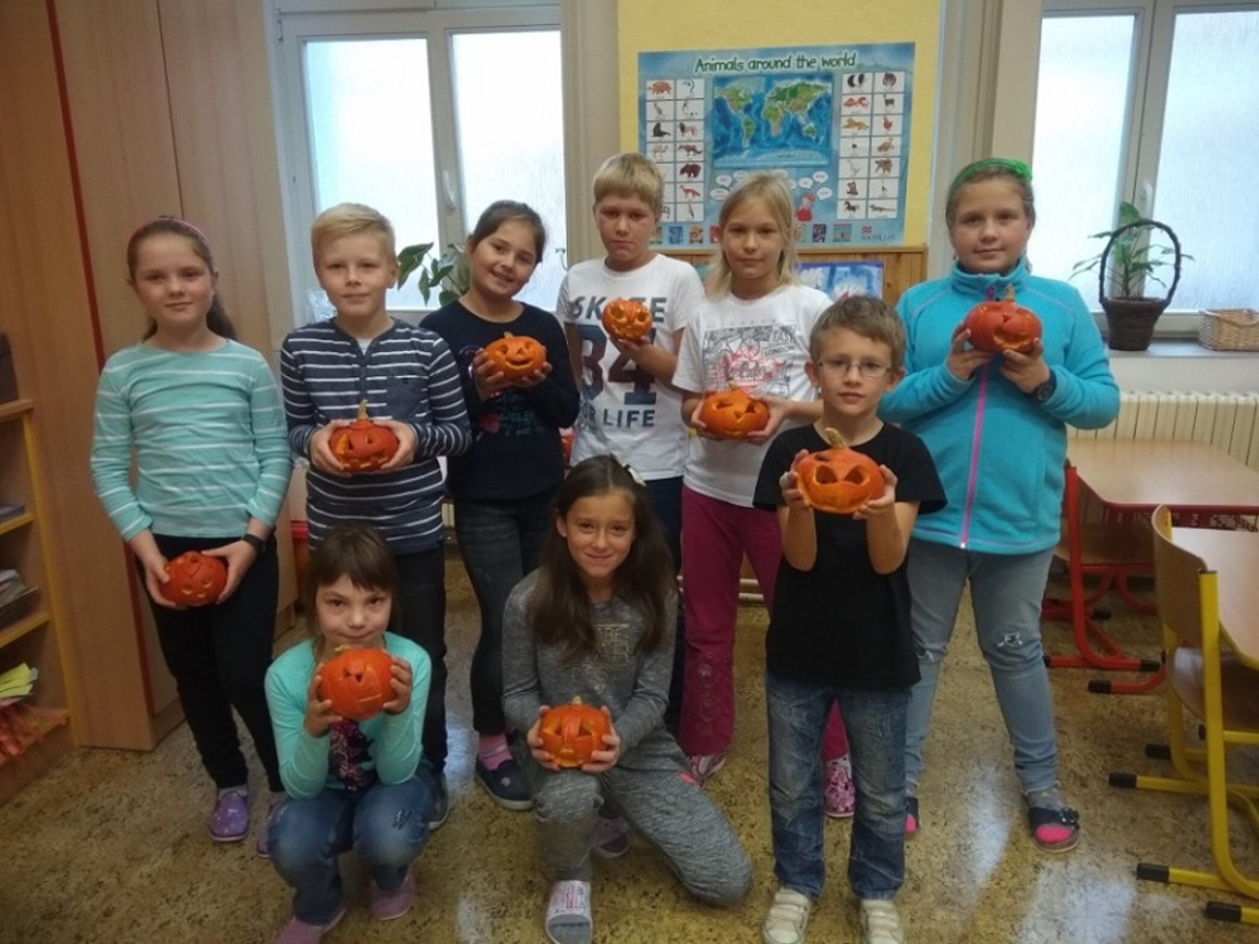 Konec října je již i v naší zemi neodmyslitelně spjat se svátkem zvaným Halloween. Tento anglosaský svátek pochází z Irska, kde se vyvinul z oslav křesťanského svátku Všech svatých, u nás známého jako Dušičky. Tradičním znakem Halloweenu jsou strašidelné převleky či vyřezané dýně, které si v rámci svého zájmového vzdělávání zhotovili i žáci naší školy.
