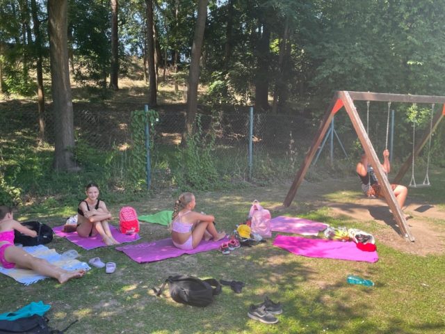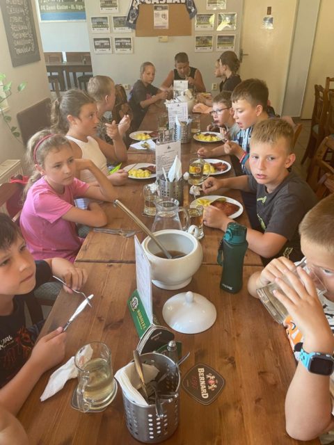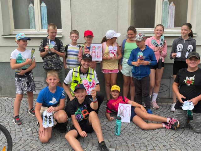Děti si v závěrečné části kempu procvičily pravidla silničního provozu na dopravním hřišti. Závěrečnou část tábora potom všichni zakončili hledáním pokladu😊