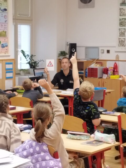 Na ZŠ Čáslav Náměstí se dnes děti seznamovaly s pravidly a bezpečností dopravního provozu. Dopravní výchově je však tentokrát nevyučovala paní učitelka, ale pan Málek z Městské policie Čáslav. V průběhu školního roku budou lekce pokračovat jízdou zručnosti na dopravním hřišti a kdo ví, třeba malí cyklisté v příštích letech navážou na své úspěšné starší spolužáky a budou vozit medailová umístění z vrcholných dopravních soutěží.